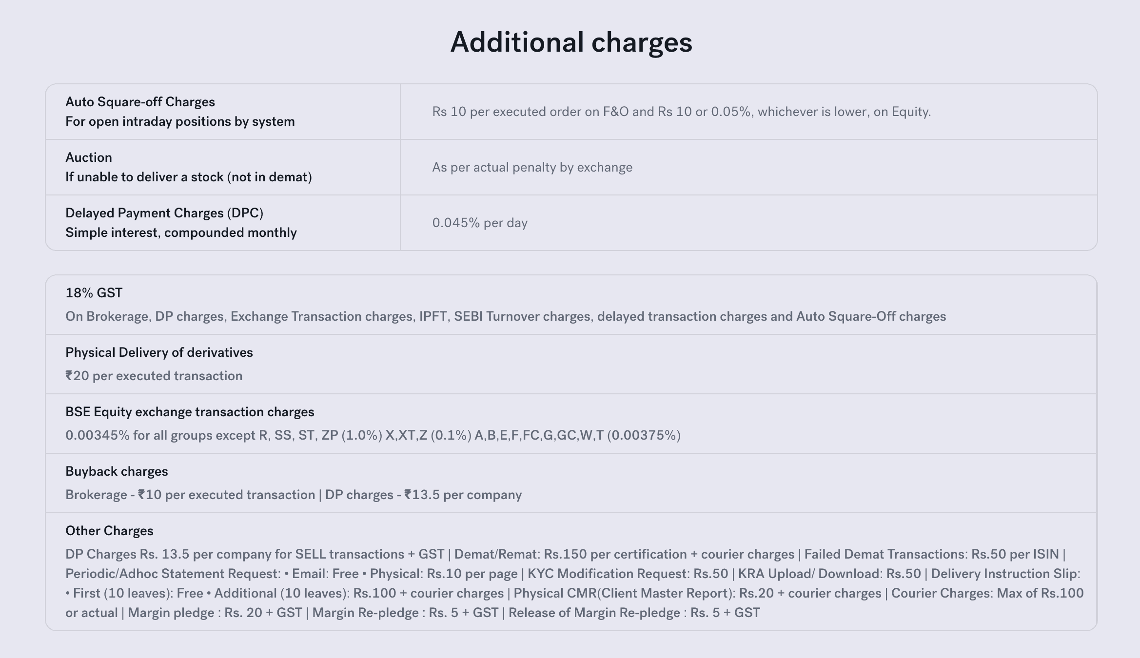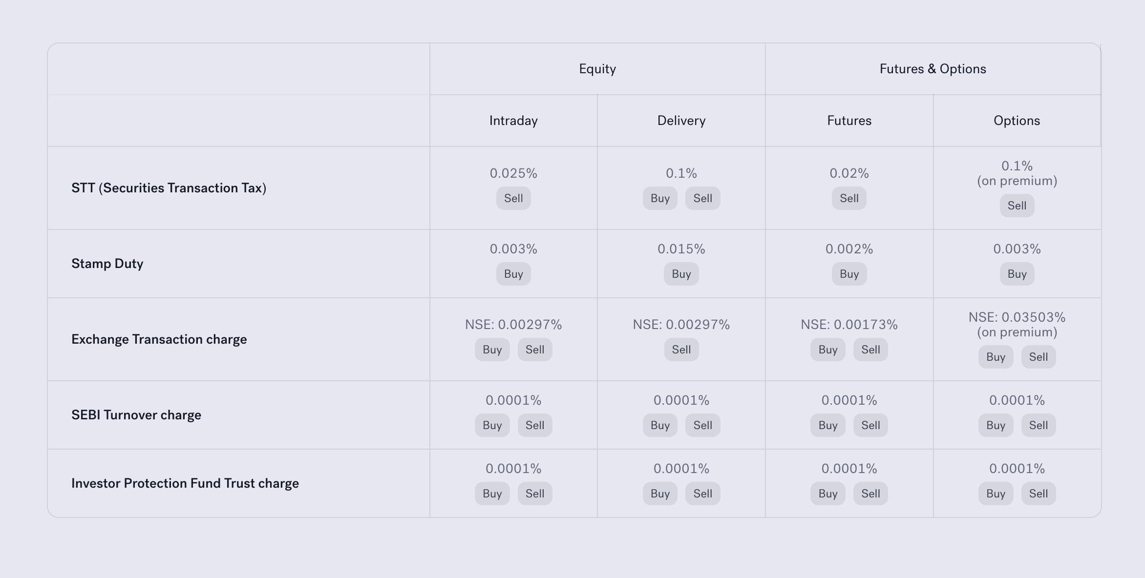 | Exchange & SEBI Fees | Infrastructure & regulation charges, charged by the exchange you trade on |