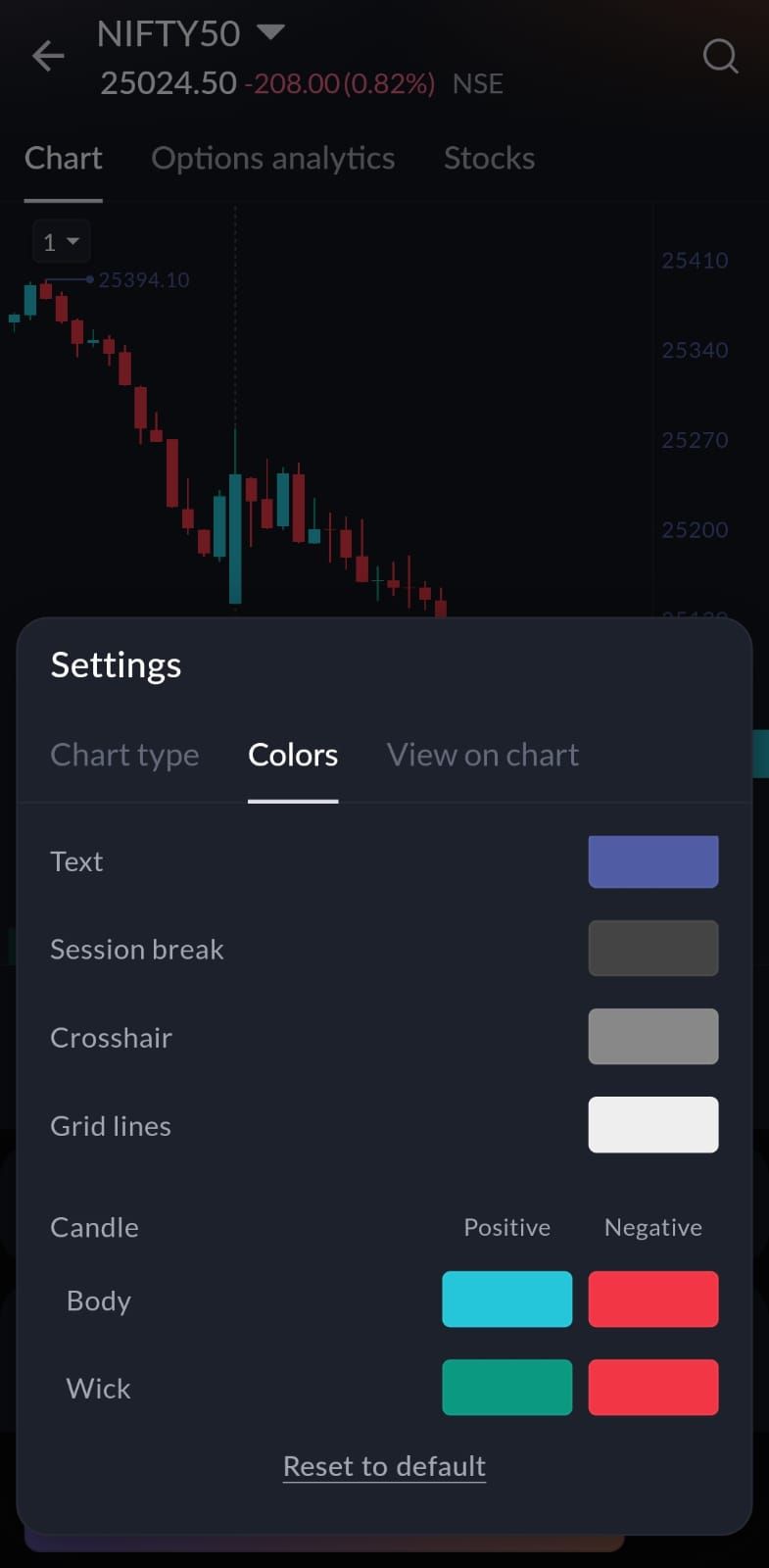 Personalising your charts just got easier. Sahi’s chart settings now include an enhanced color palette that allows you to visualise the color in a better way in the settings panel. That means you can experiment with different colors and see exactly how they’ll look on your chart before you hit “Save.”
