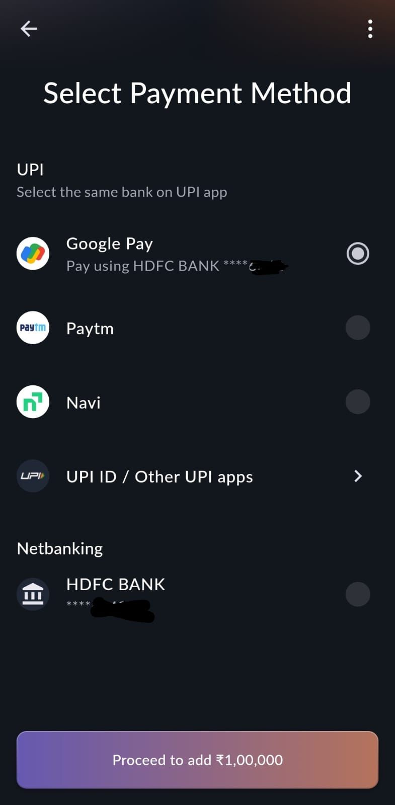 Funding your account is now quicker than ever. Now, we’ve taken a step further by remembering your preferred payment method. The next time you add money, Sahi will auto-select the last-used option (UPI or Net Banking) and even the specific app or bank you used. This means fewer taps and a faster top-up.